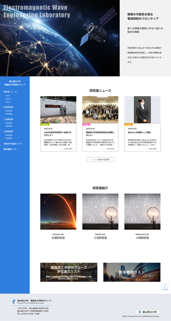 富山県立大学 電磁波工学研究グループ様の公式サイトをリニューアルいたしました。